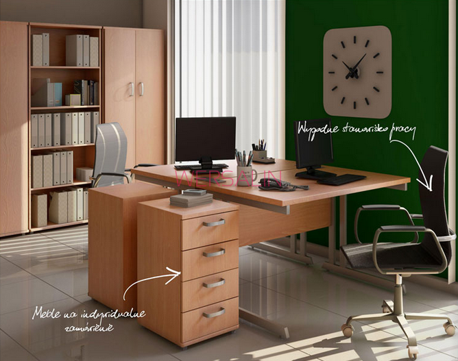 Podstawą każdej przestrzeni do pracy biurowej jest właśnie biurko — nie inaczej jest w tym przypadku. Obszerny i wygodny blat, na którym zmieści się kalendarz, notes, monitor oraz dokumenty to podstawa. Pamiętaj także o ergonomicznym krześle pozwalającym na swobodną regulację najważniejszych parametrów — wysokości, kąta nachylenia oparcia oraz ustawienia podłokietników. Biurko powinno być także ustawione bokiem do naturalnego źródła światła.